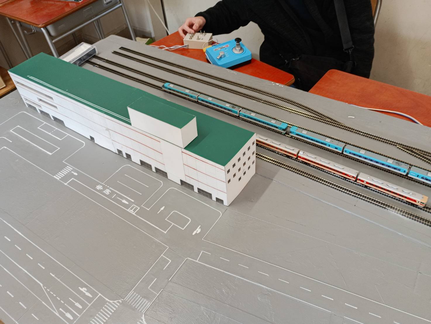 全てのボードで一通り塗装が終わり、配線を担当してもらっているkadnoさんも配線ボックスが出来上がったとのことなので、レイアウトの全線試運転をしてみようということになりました。このような全線試運転は、4時間程度で片付ける必要のある通常作業では難しく、何日もボードを広げ、準備できる長期休み作業に限られてしまうのでこのタイミングは丁度良かったです。まずは全線試運転に向け、事前に貼ってある枕木にレールを入れ、電気を通すのに必要なジョイントという小さい金属の部品を入れました。また、レールに直接ハンダ付けをして、レールに電気が送れるようにしました。コードの不具合など色々ありながらも、試運転では概ね問題なく全線動いてくれたので一安心でした。配線、電気関係は全てkadnoさんに丸投げしていたので、kadnoさんには大変感謝です。しかし、一部では脱線や接触不良などの問題が起こってしまったので、今後の作業ではそれらを修正しつつ、このレイアウトの目玉である海の部分を完成させたいと思います。