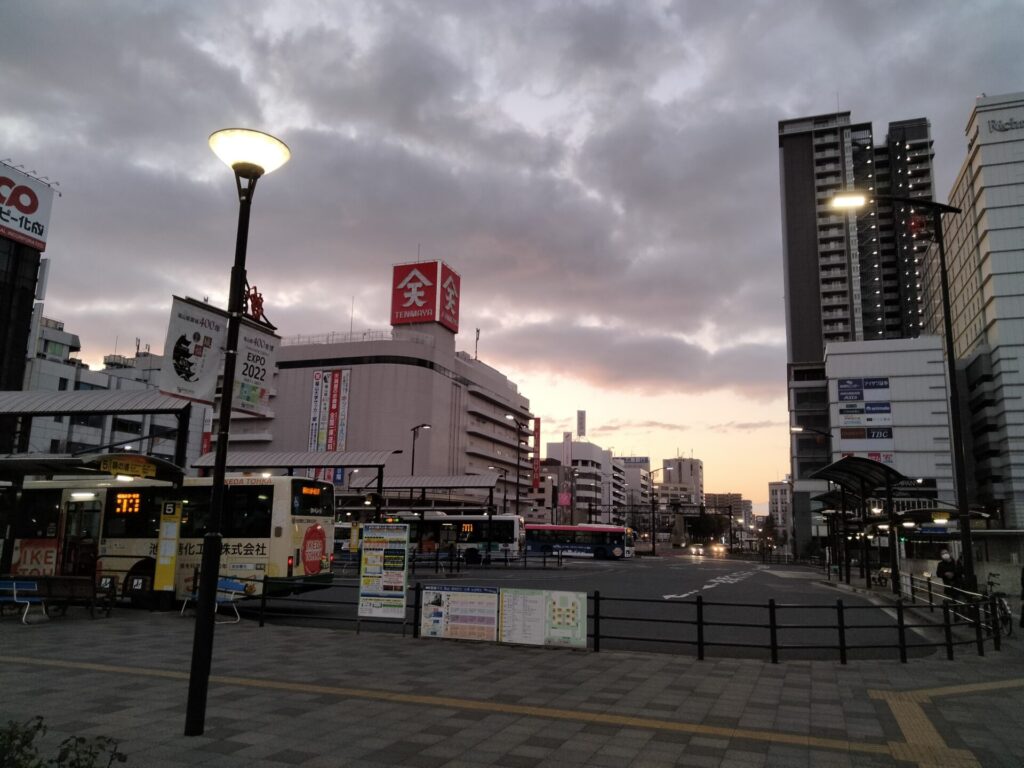 駅前の様子。高層の建造物が目立つ、栄た町の駅前です。最初来たときに、こんなに発展しているのかと驚いた記憶があります。