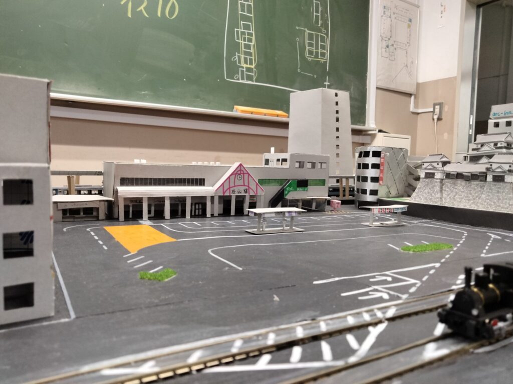 我がレイアウトの自慢、松山ボードです。このボードだけは、他の学校の市販品勢にも負けないという自信あり。正直、このボードについてはいくらでも語れるのですが、要点だけ。